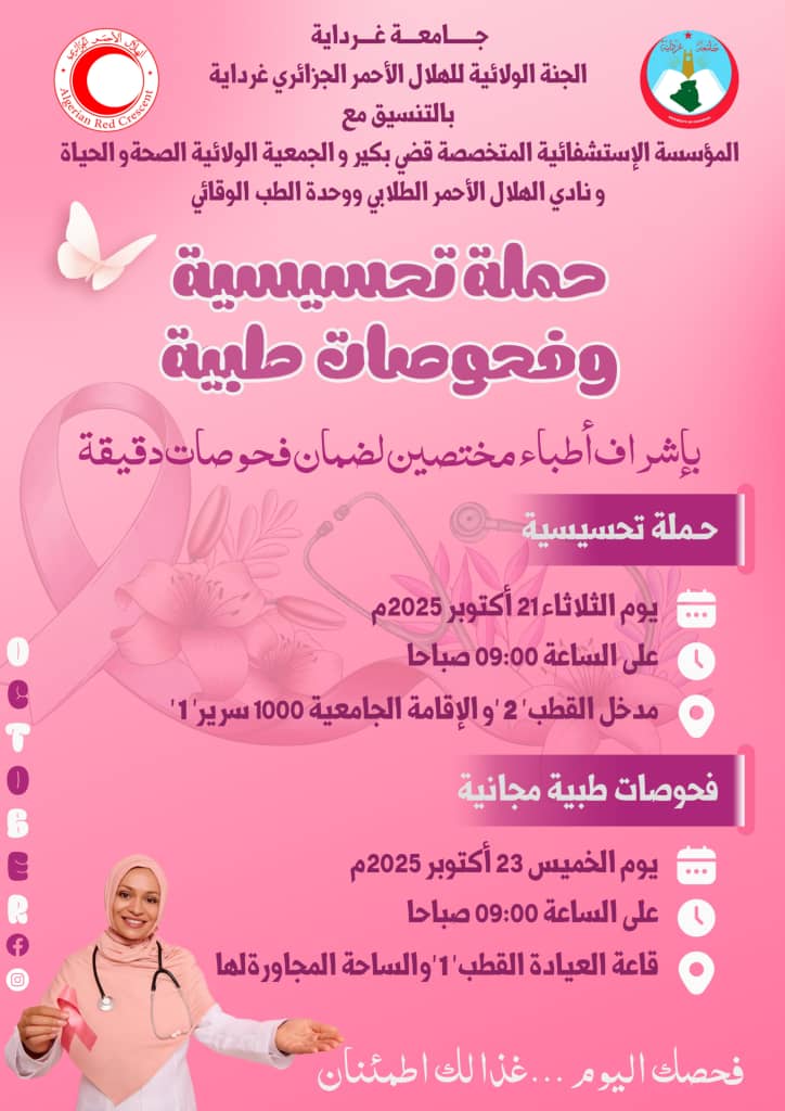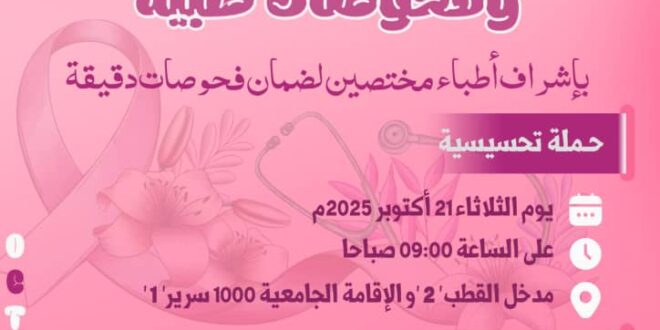 إعلان عن حملة تحسيسية وفحوصات طبية 21 أكتوبر 2025 الإعلانات, مقالات مميزة 11 زيارة شاركها Facebook Twitter LinkedIn