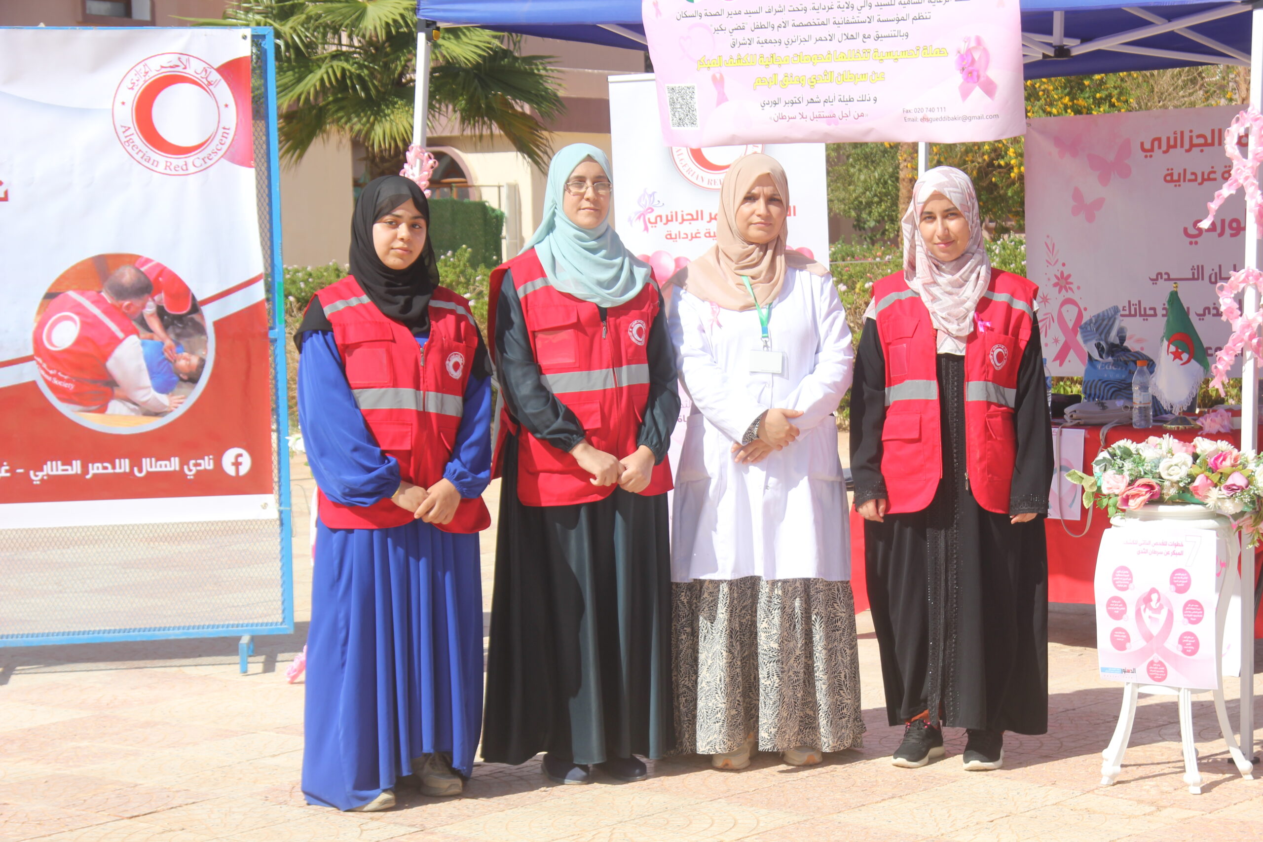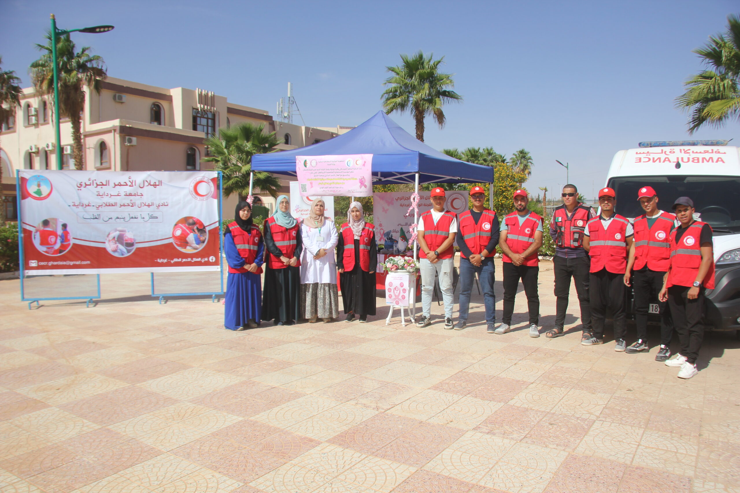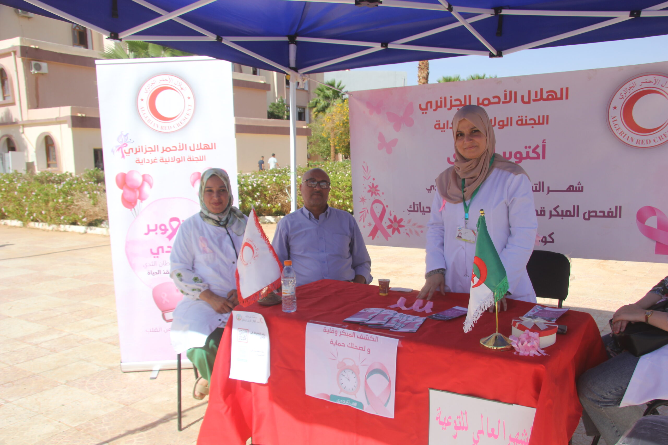 بتاريخ 21 أكتوبر 2025 وفي إطار إحياء الشهر العالمي للتوعية بسرطان الثدي “أكتوبر الوردي”، نظمت وحدة الطب الوقائي للجامعة بالتنسيق مع اللجنة الولائية للهلال الأحمر غرداية والمؤسسة الإستشفائية قضي بكير حملة تحسيسية تهدف إلى رفع و نشر الوعي الصحي حول سرطان الثدي بين أفراد المجتمع الجامعي كذا التشجيع على الفحص الذاتي والكشف المبكر وتقديم شروحات حول الأسباب التشخيص والعلاج وكذا الوقاية مع عرض ملصقات توعوية و توزيع مطويات حول الموضوع، حيث لاقى النشاط تجاوب وتفاعل إيجابي من الحاضرين وذلك بساحة كلية علوم والتكنولوجيا وكذا بساحة الاقامة الجامعية 1000 سرير 1.