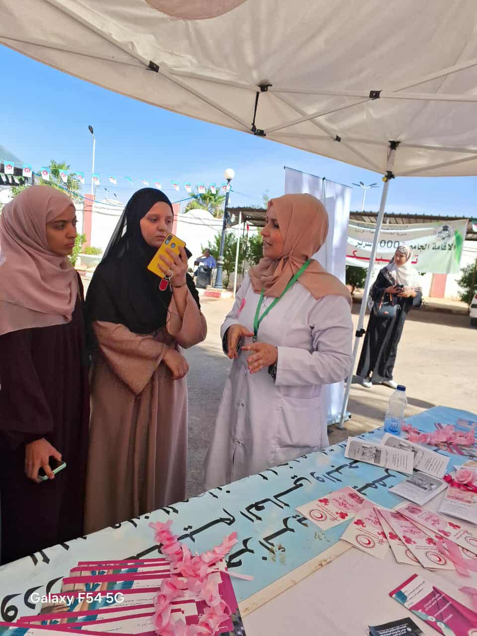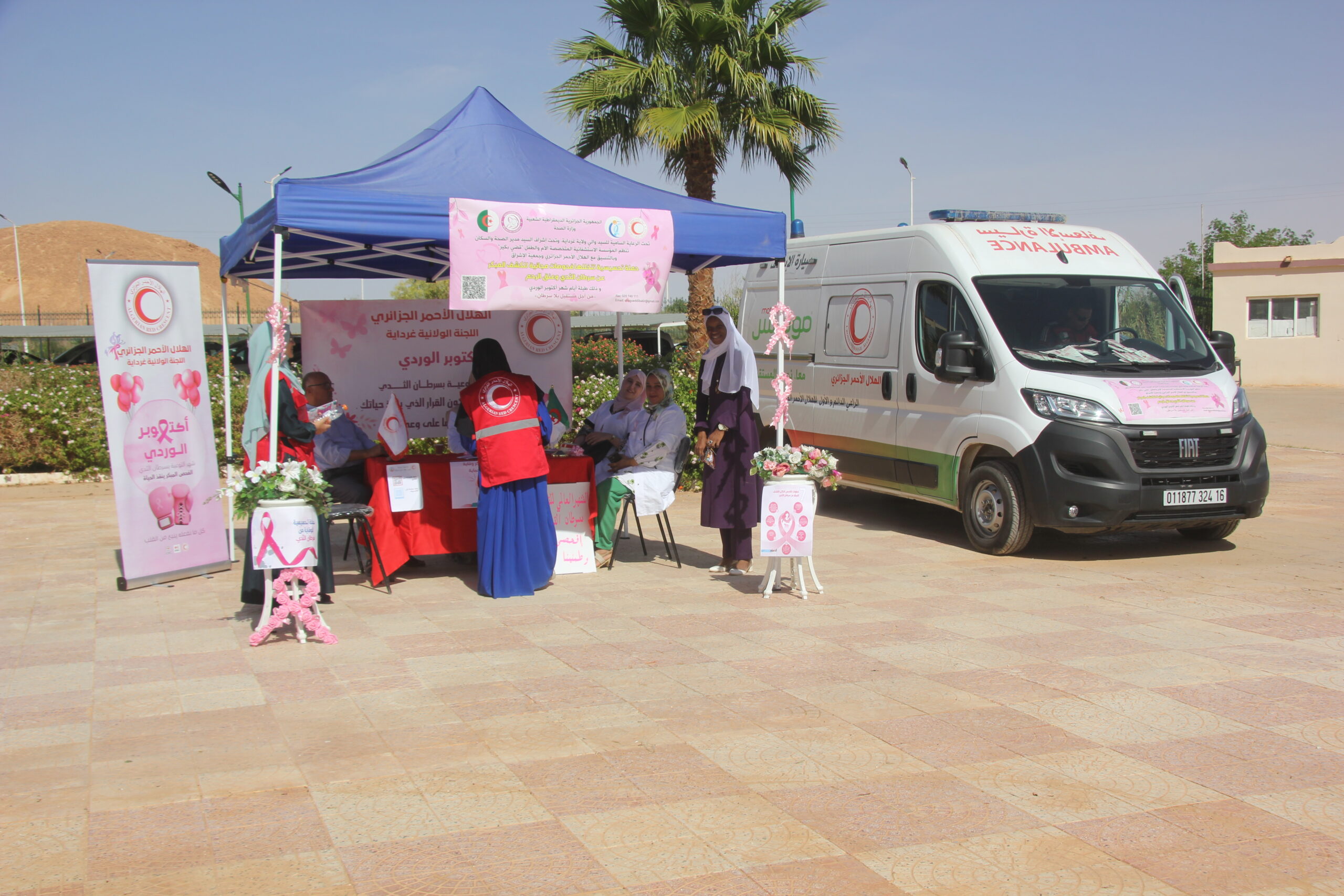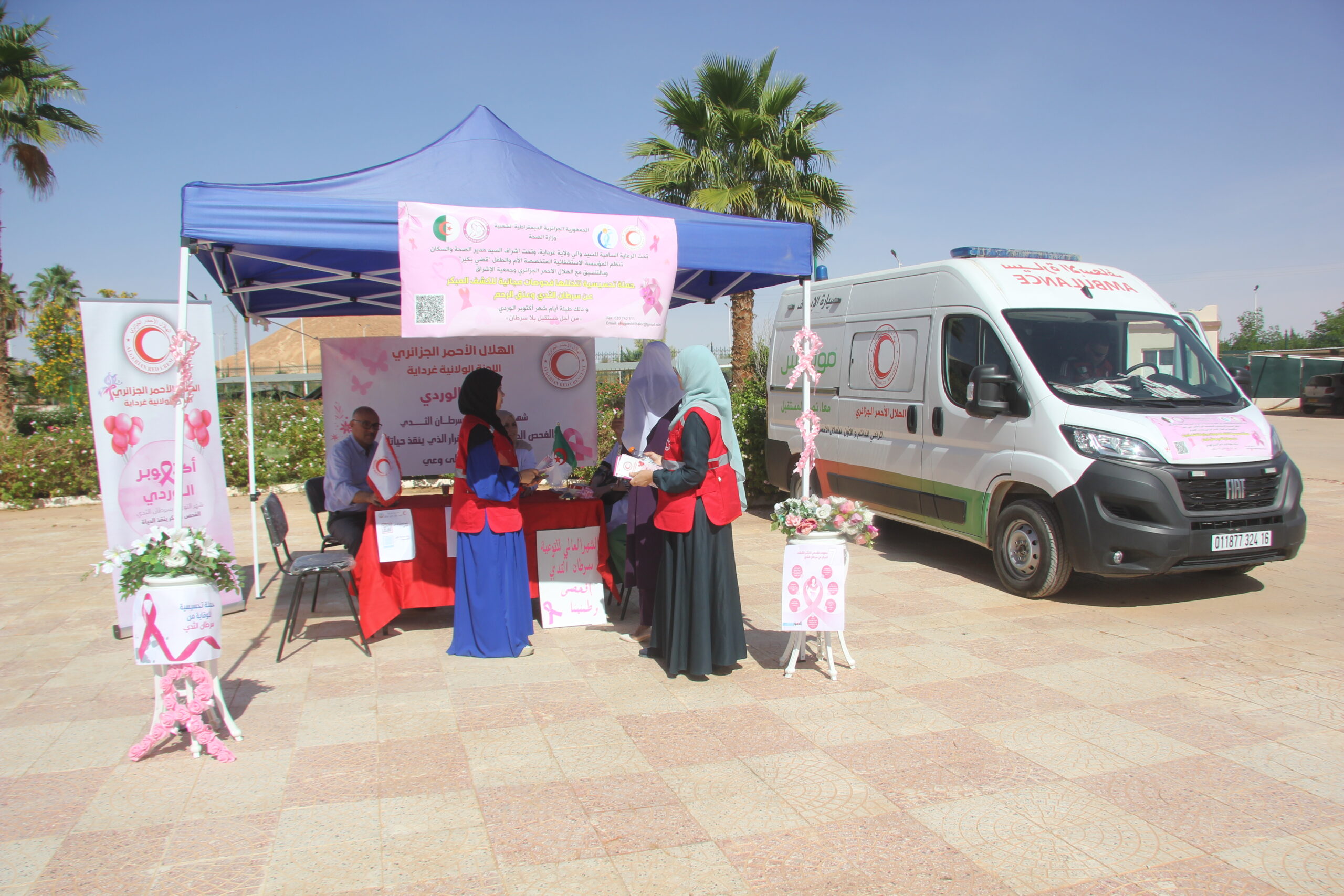بتاريخ 21 أكتوبر 2025 وفي إطار إحياء الشهر العالمي للتوعية بسرطان الثدي “أكتوبر الوردي”، نظمت وحدة الطب الوقائي للجامعة بالتنسيق مع اللجنة الولائية للهلال الأحمر غرداية والمؤسسة الإستشفائية قضي بكير حملة تحسيسية تهدف إلى رفع و نشر الوعي الصحي حول سرطان الثدي بين أفراد المجتمع الجامعي كذا التشجيع على الفحص الذاتي والكشف المبكر وتقديم شروحات حول الأسباب التشخيص والعلاج وكذا الوقاية مع عرض ملصقات توعوية و توزيع مطويات حول الموضوع، حيث لاقى النشاط تجاوب وتفاعل إيجابي من الحاضرين وذلك بساحة كلية علوم والتكنولوجيا وكذا بساحة الاقامة الجامعية 1000 سرير 1.