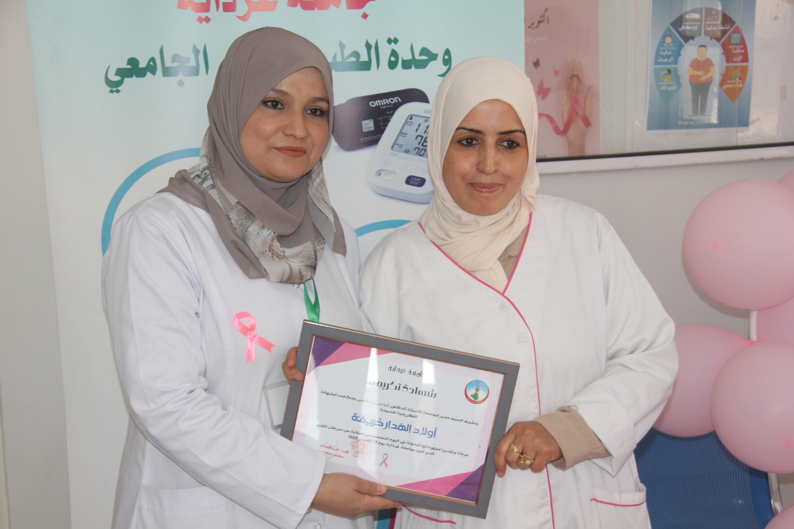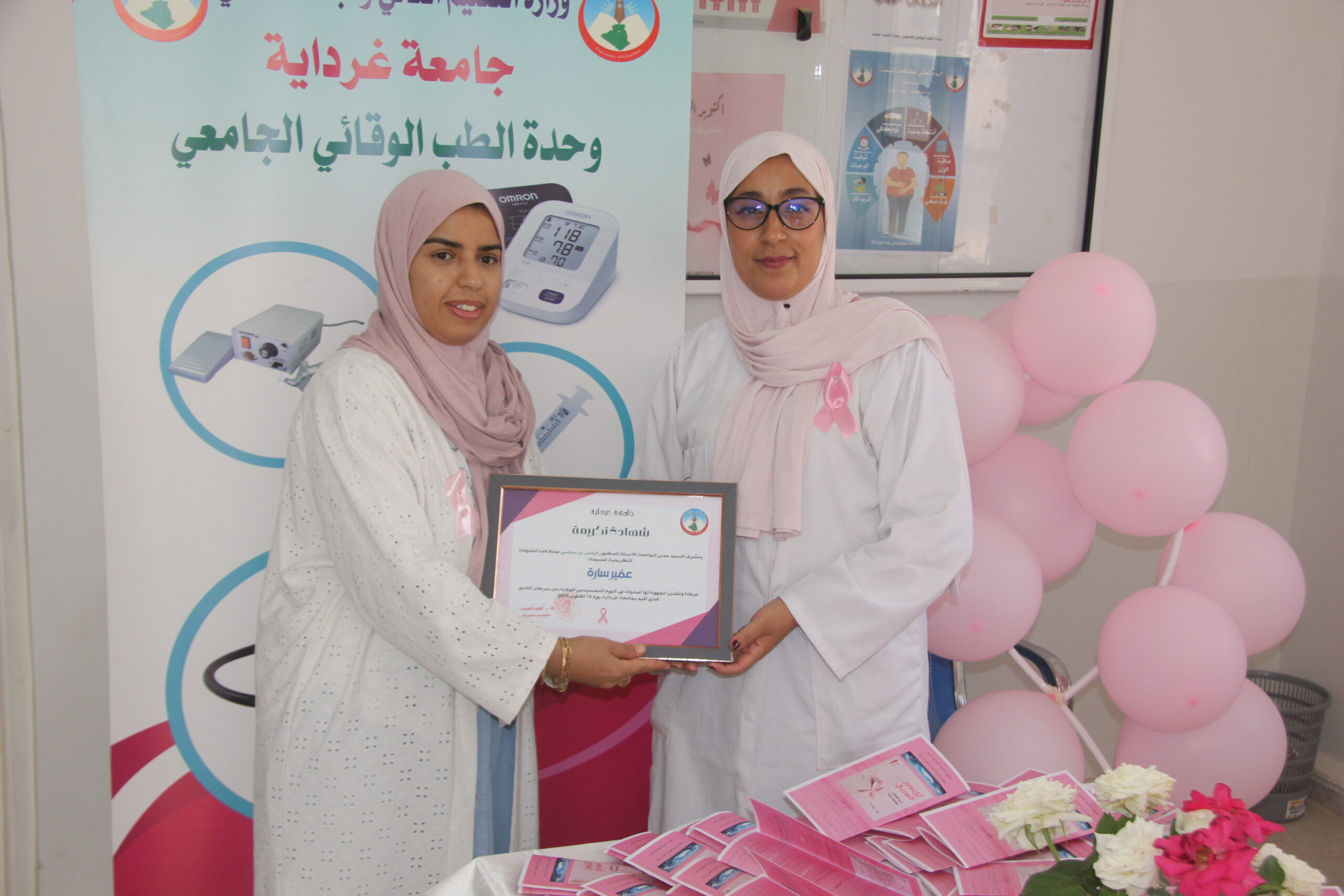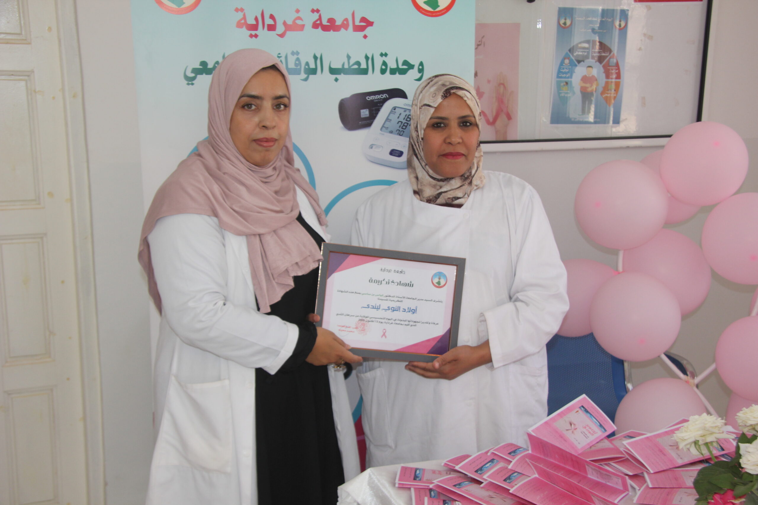 في إطار فعاليات شهر أكتوبر الوردي (october rose) وتحت إشراف السيد مدير جامعة غرداية، نظمت يوم الاثنين 13 أكتوبر 2025 وحدة الطب الوقائي الجامعي عيادة القطب رقم 03 فحوصات طبية وتحاليل مجانية تحت شعار (افحصي مبكرا لا تنتظري الأعراض) وذلك من طرف أطباء وقابلات في الصحة العمومية لفائدة جميع الطالبات والعاملات بمختلف الرتب.