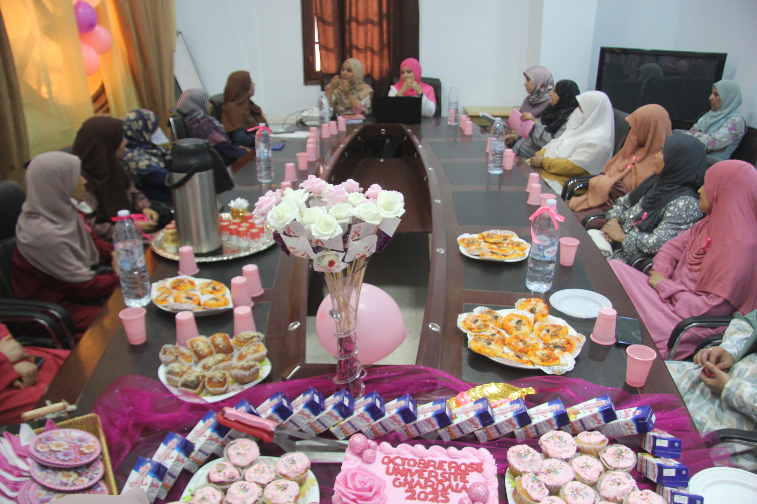 بتاريخ الأحد 12 أكتوبر 2025 وبمناسبة الشهر الوردي وفي إطار الحملات التحسيسية والتوعية ضد سرطان الثدي الموصى بها من طرف الوزارة، نظمت وحدة الطب الوقائي لجامعة غرداية يوم تحسيسي لموظفات الجامعة حول سرطان الثدي، وذلك بقاعة اجتماعات الأمانة العامة للمديرية المركزية.
